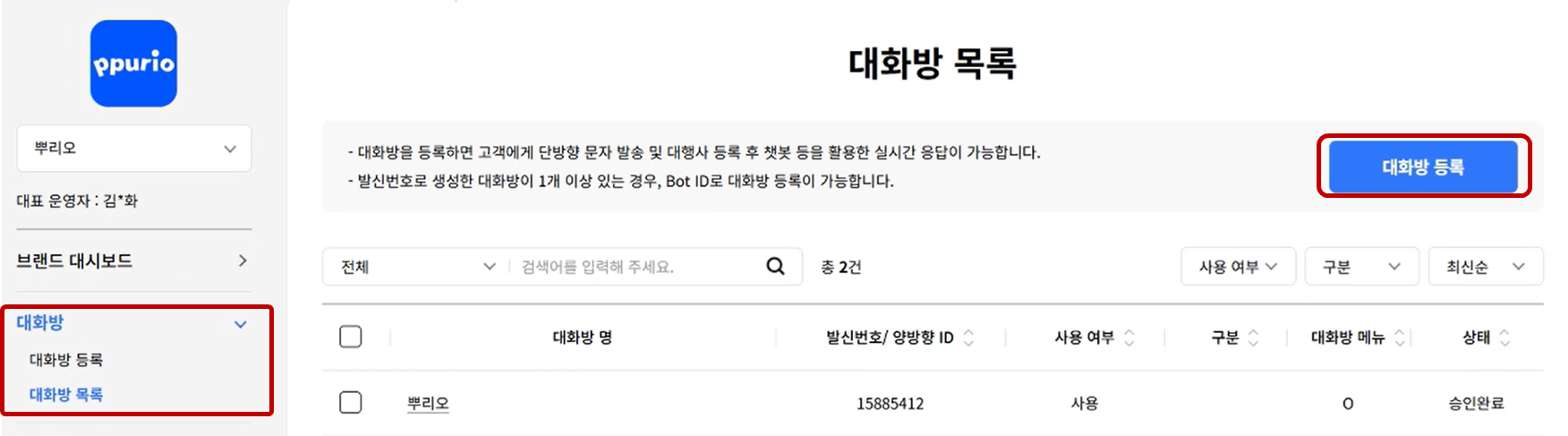 브랜드 심사가 완료되었다면 다음 단계는 '뿌리오 대행사 권한 추가' 입니다.