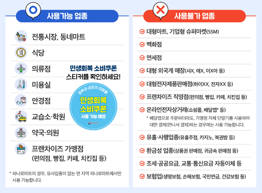 이렇게 지급 받은 소비쿠폰, 소상공인을 지원하는 만큼 지역 소상공인 매장에서만 사용할 수 있어요.