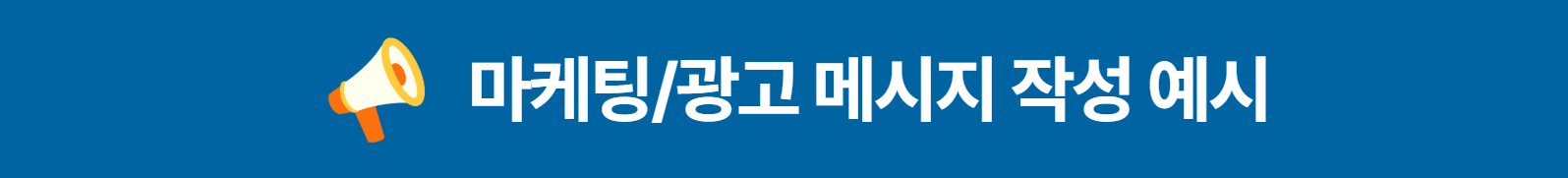 - 마케팅/광고 : 할인/프로모션 안내, 신상품 출시 안내, 구매 유도 프로모션, 이벤트 홍보 등