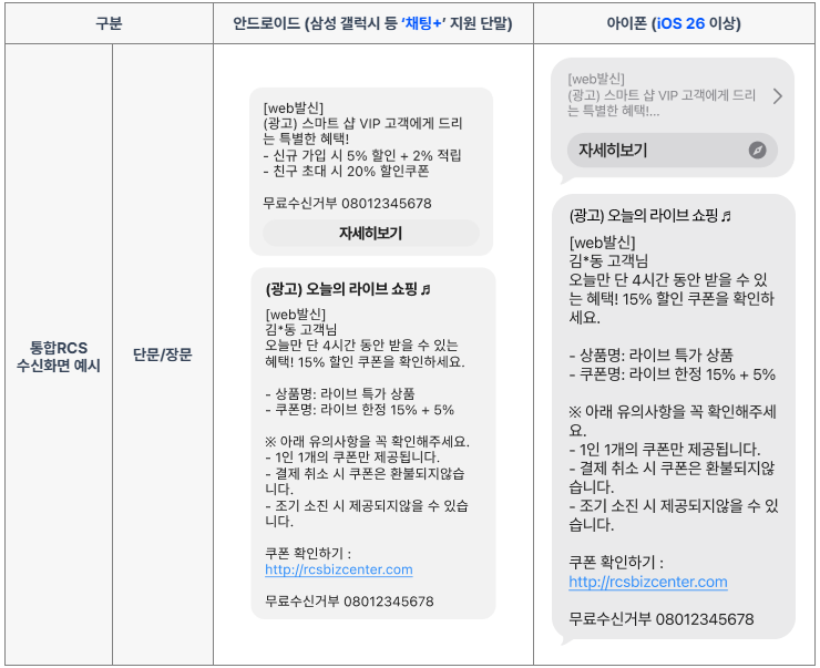 안녕하세요! 통합 RCS (스마트문자) 업그레이드 소식을 전해드립니다.