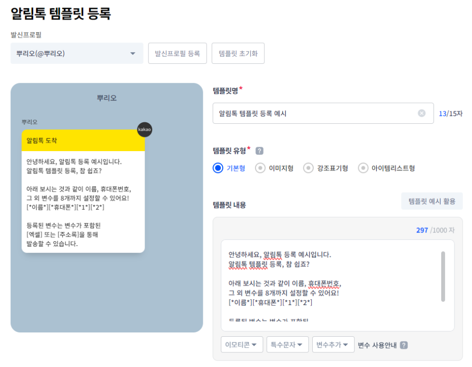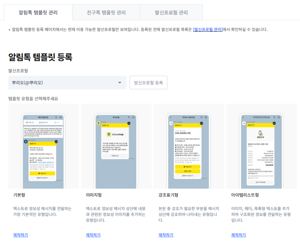 ⑤ 템플릿 등록 (알림톡 필수, 친구톡 선택)