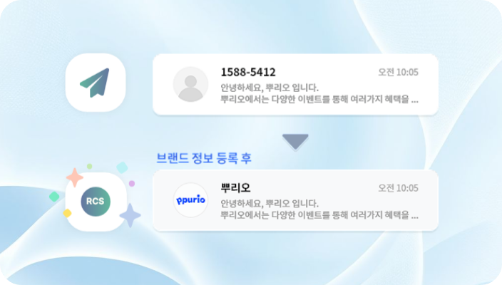 내 전화번호를 사용해서 발신되는 메시지 발신자가 "브랜드명 / 브랜드로고" 형태로 보여지게 됩니다.