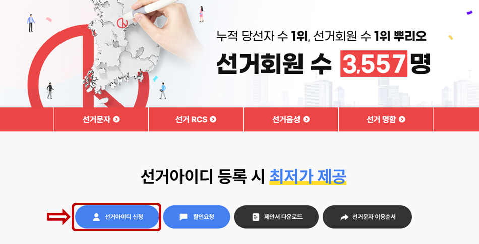 뿌리오 선거문자를 발송하기 위해서는 선거 아이디 등록이 필수인데요, 선거회원으로 등록할 경우 훨씬 더 저렴한 단가로 이용할 수 있으니 꼭 진행해 주세요!
