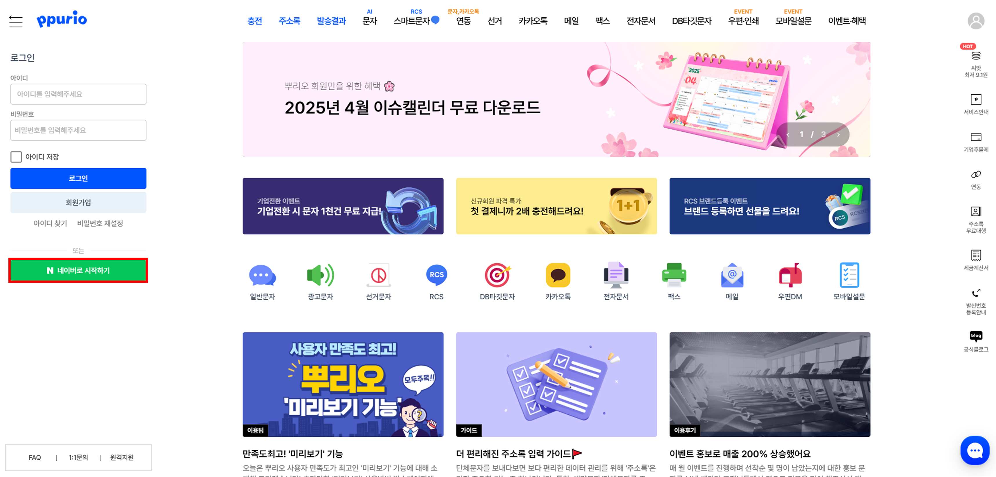 네이버 로그인으로 뿌리오에 로그인 하실 수 있어요! 👍🏻