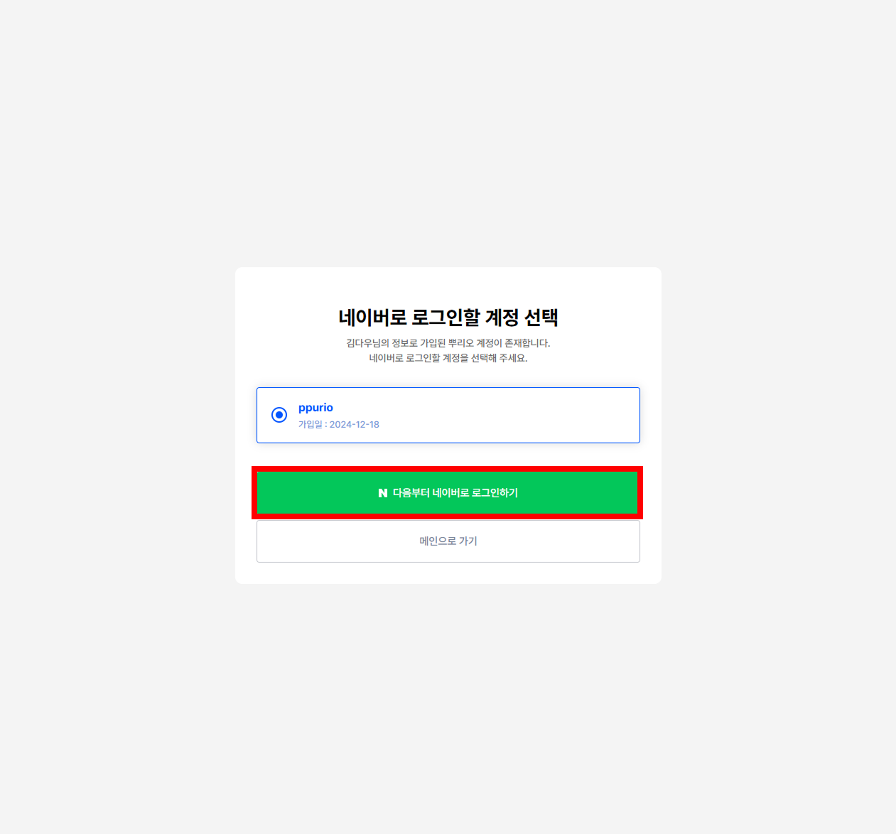 다음에 뿌리오를 이용하실 때도 [네이버로 시작하기] 버튼만 클릭하면 바로 로그인 됩니다 ✅